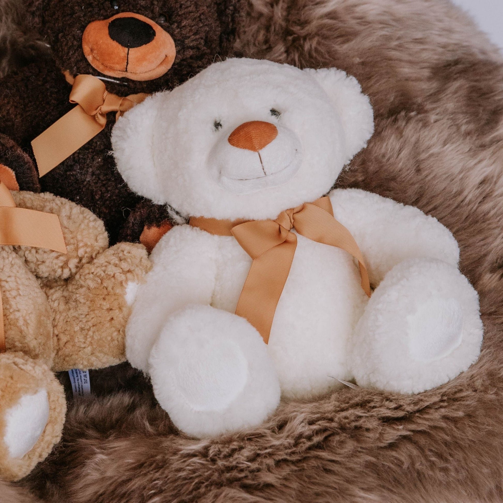 New Zealand Shorn Curly Sheepskin Teddy Bear, 100% recycled PET fill. Size 30cm